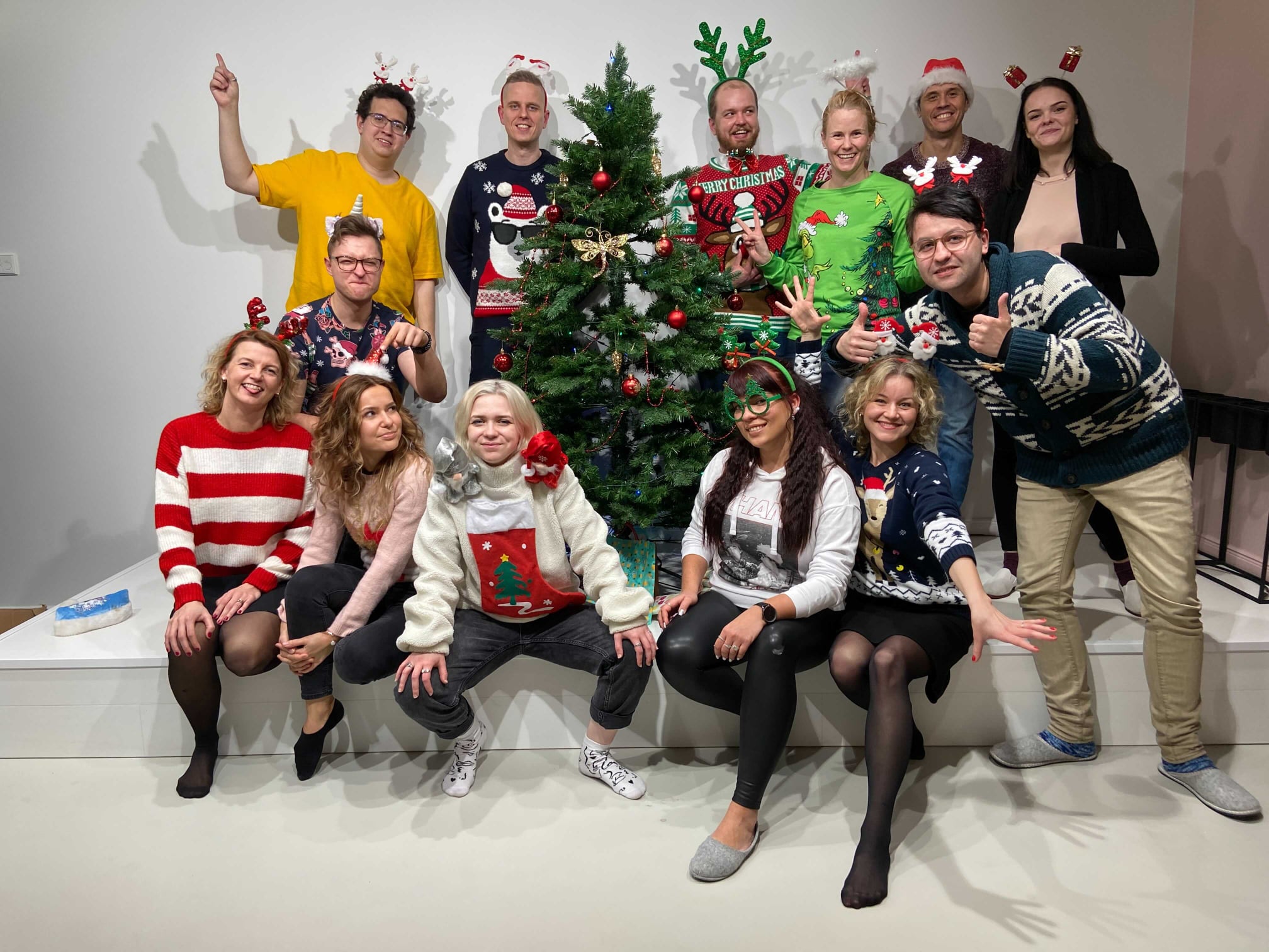FoodDocs'i Jõulupidu kontoris 2021 (mina kõige paremal, kampsuniga)